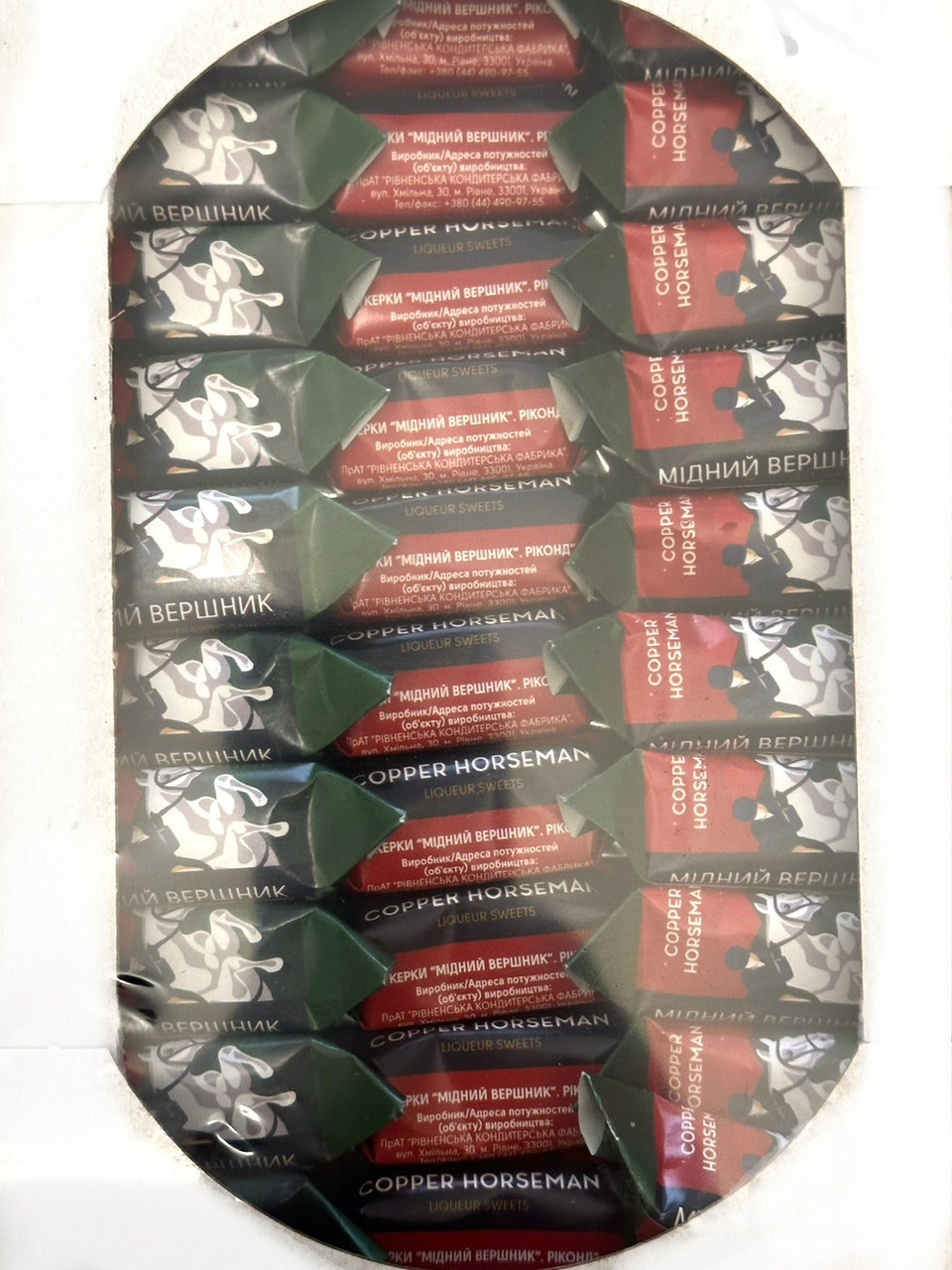 КОНФЕТИ МЕДНИЙ СМАДНИК — цукерка з алкогольною начинкою (коньяк), має цукрово-шоколадний корпус.